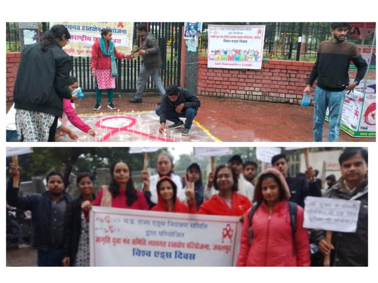 Today on 1/12/2023, on the occasion of World AIDS Day, Jagriti Yuva Manch Samiti participated in the programs and among the programs organized by the organization, one very important thing came out in our observation that this time World AIDS Day The theme of the day, let the community lead, was really amazing. And with this theme, positive results were also seen today. Today Jagruti Yuva Manch's peers Umesh Negi and Abdul Rahim were given the ICTC, PPTCT and ART at Netaji Subhash Chandra Bose Medical College, Medical College, Jabalpur. Was invited as a representative and speaker of the community. And the statements given by him in all the programs were appreciated by everyone. In fact, when we organize any program or make any plan keeping the community at the forefront, it is sure to be successful. In the evening, awareness programs were organized by Jagriti Yuva Manch Samiti in the Civic Center area. But during our preparation it started raining heavily. But we and the community did not give up. Even in the pouring rain, the enthusiasm of the community was so high that it could overcome every obstacle. We thought that the program would have to be postponed in this rain, but the community said that we will hold our program even during this rain. Seeing the community associated with the organization and the staff members of the organization conducting awareness campaign in heavy rain, some youth also joined us. All those people who were watching us should themselves become a part of our awareness program by joining us. Today I really felt that even the obstacles inspire us to fight on any issue. And when we are struggling against obstacles, for a particular issue, for a particular purpose, then this struggle is not of anyone alone, we set out alone on a path and the caravan itself is walking with us step by step. Joins us. In fact, this community led theme is very effective. If we keep this theme intact in the future, then surely whatever work we are doing regarding HIV AIDS will definitely be effective at our level.