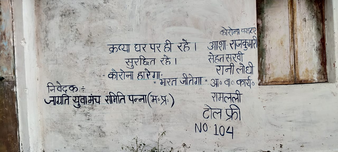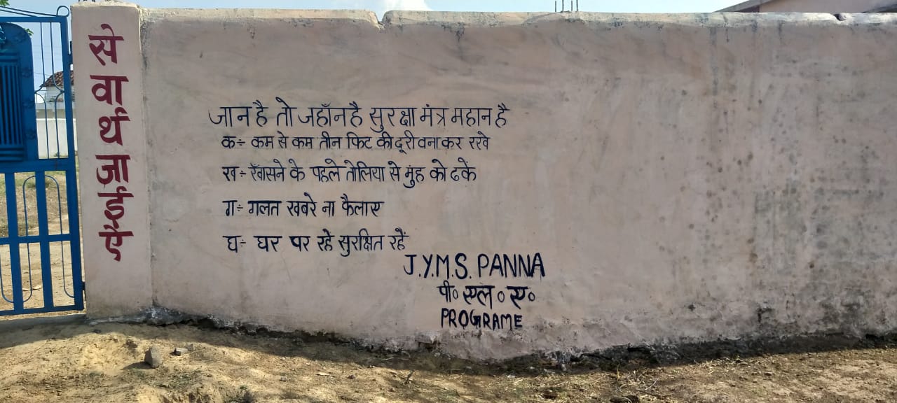 Jagriti Yuva stage in Shahnagar making people aware of corona through painting under PLA program. JYMS institution in Covid-19 is playing important role with District NHM under PLA program. Along with this, the whole team is carrying out their duties while doing duty day and night continuously in the Cervantine Center under the direction of CMHO sir. People are being made aware through wall writing in the area. During the tour in the village, the community is being told the use of masks and the importance of washing hands. Awareness of vaccination for target group women, children and midwives in village VHND. Assisting ASHA worker in making list of people from outside.