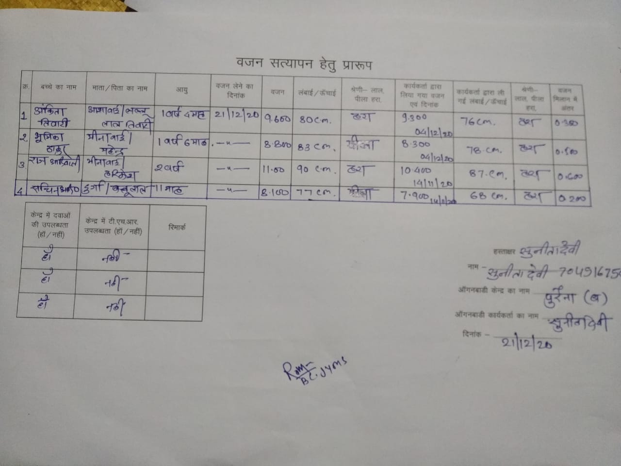 The organization has been selected for the eradication of malnutrition by Women Child Development, under which the Gramo adopted by the organization to all block coordinators and members of the institution's core committee is being regularly followed up, along with regular checks by weighing the children. Information is sent to the department.