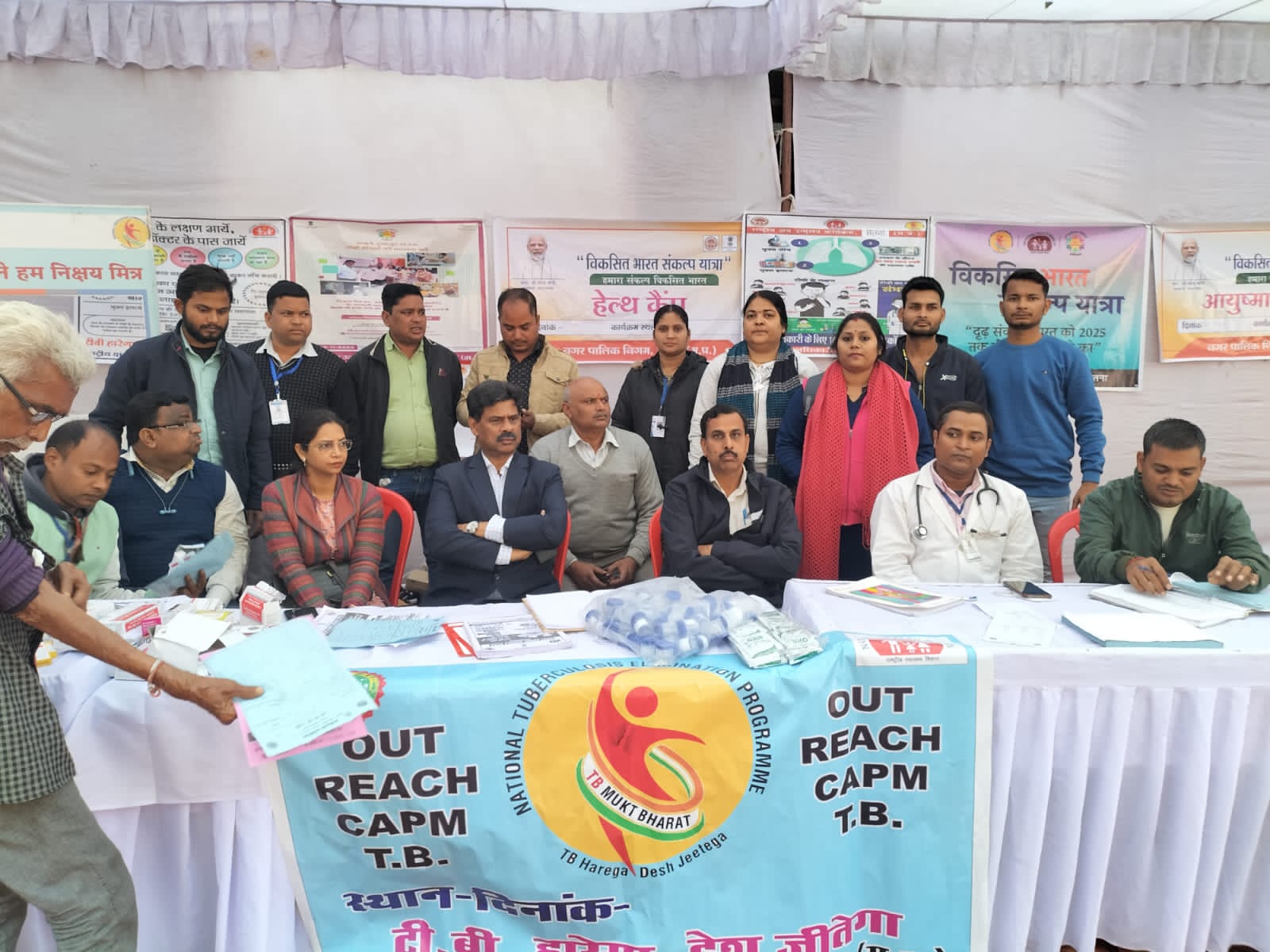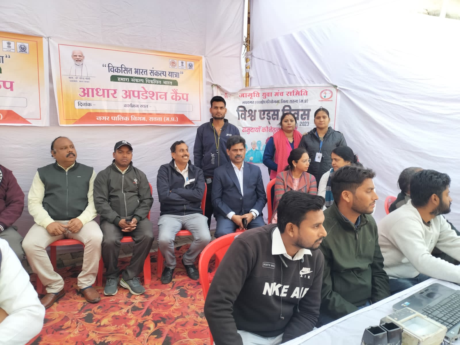 Today on 16/12/2023, under the guidance of Chief Physician and Health Officer Dr. LK Tiwari, on World AIDS Day, in the presence of Dr. Charan Singh Nodal Nodal Officer, Dr. Pooja Gupta Chhay Rog Nodal, and Dr. Gyanesh Mishra, HIV/AIDS Day. In the context of leading the community to spread awareness about AIDS, members of HRG community and Jagriti Yuva Manch Samiti organized a health camp and HIV AIDS awareness program in the Vikas Bharat Sankalp Yatra inauguration program organized at Civil Line Chowpatty. The objective of which was to convey important information about HIV to the people while promoting a sense of compassion and understanding. This awareness campaign was carried out by community members through posters and informative pamphlets. Today, Dinak was made aware about HIV AIDS through IC material. Community members participated in the HIV AIDS awareness campaign by wearing red ribbons. HRG community participated enthusiastically in today's program and all kinds of tests were done in the health camp. The health team present made this program successful. Today's program included Ashutosh Payashi, OST consultant Abhishek Singh, and from Targeted Intervention Project. PM Jyoti Pandey Pier, High Risk Community and Dr. Sanjay Suryavanshi, NM Shifa Namdev Shaheen Begum Amendra Gupta were present.